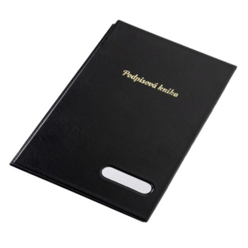 Aláírókönyv 14 elválasztólappal – a borítón címkével – rugalmas gerinc a kapacitás növelése érdekében – vastag kartonból – kemény, ftalátmentes műanyag borítás. Méret: 241x350x22 mm, Csomagolási egység: 9 db