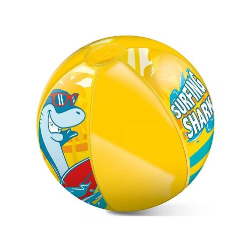 Dobd fel a strandolást vagy a medencés pancsolást ezzel a vidám, cápa mintás felfújható strandlabdával! A „Surfing Shark” dizájnnal készült labda garantáltan a gyerekek kedvence lesz, hiszen a napszemüveges, szörföző cápa egy igazi vízi kalandra csábítja őket. A sárga alapszín és a feltűnő minta nemcsak vidám hangulatot teremt, hanem a vízben és a parton is könnyen észrevehetővé teszi a labdát.; ; ; ; Az 50 cm-es átmérő tökéletes méret kisebb és nagyobb gyermekek számára egyaránt, legyen szó labdázásról a medencében, a tengerparton vagy a kertben. A strapabíró PVC anyagnak köszönhetően a labda ellenáll a kisebb sérüléseknek, így hosszabb távon is remek játékélményt nyújt. Könnyen felfújható és leereszthető, így pillanatok alatt használatra kész, valamint egyszerűen szállítható és tárolható is.; ; ; ; Ez a strandlabda tökéletes választás családi nyaralásokhoz, medencés bulikhoz vagy akár egy egyszerű délutáni játékhoz a kertben. A mozgásra ösztönző játék remek lehetőséget ad a gyerekeknek arra, hogy fejlesszék koordinációs képességeiket és energiájukat vidám formában vezessék le. Készülj fel egy felejthetetlen nyárra ezzel a menő strandlabdával!; ; ; ; Jellemzők:; ; - Vidám, cápás „Surfing Shark” dizájn; ; - 50 cm-es átmérő, ideális gyerekek számára; ; - Strapabíró PVC anyag, hosszú élettartammal; ; - Könnyen felfújható és leereszthető; ; - Tökéletes strandoláshoz, medencézéshez és szabadtéri játékhoz