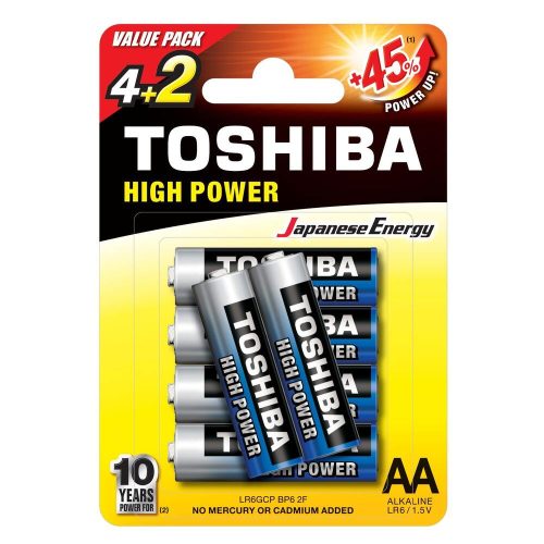Ceruzaelem AA (LR6) , 1.5 Volt , 6 darab , tartós , elem , High Power , TOSHIBA