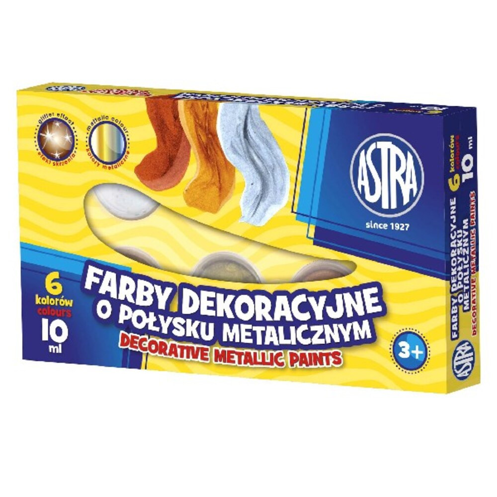 A fémes fényű dekoratív, vízalapú festékek, amelyek ezüst, arany, sárgaréz, réz és bronz színekkel vannak ellátva. Dekorációra és általános művészeti projektekre tervezték őket. Tökéletesen lefedik azokat a felületeket, amelyek felszívják a vizet, például papír, kerámia, karton, fa. A festékszínek nem folynak össze, így könnyen elhelyezheti az egyik színt a másik mellé. A festékek ellenállnak a kopásnak. A fémes festékek konzisztenciája lehetővé teszi, hogy víz nélkül festhessen. A jó lefedettség elérése érdekében 2-3 réteg festéket vigyen fel a festett felületre.