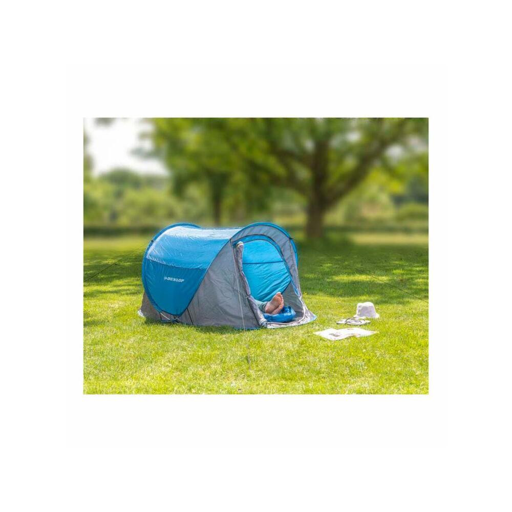 Fedezze fel a kempingezés végső kényelmét a DUNLOP pop-up sátorral. Gyors felállítás és időjárásálló. Ez a tágas sátor két fő számára kínál helyet, mérete 255 x 155 x 95 cm. A feltűnő kék sátor ideális fesztiválokra és rövid kempingezésekre. A pop-up technológiának köszönhetően a sátor kevesebb mint egy perc alatt felállítható. Anyaga: poliészter.; A csomagolás mérete: 255 x 155 x 95 cm