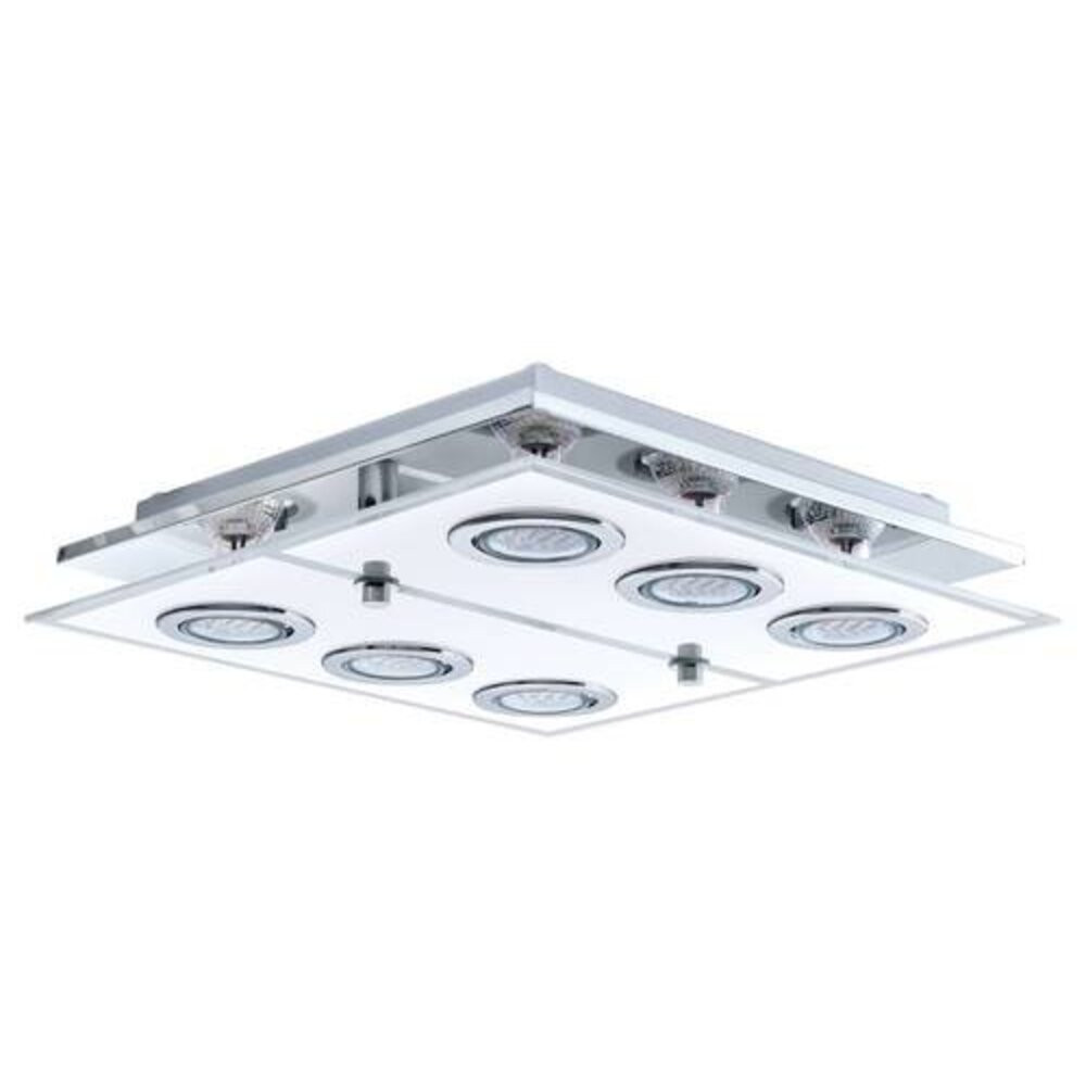 Ez a CABO sorozatú mennyezeti lámpatest krómozott rozsdamentes acélból és tiszta, fehér szaténüvegből készült. Hat GU10-LED-lámpával van szerelve, amely meleg fehér fényt biztosít.