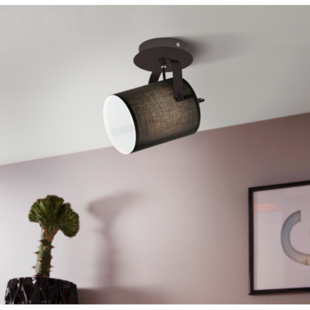 A VILLABATE fali vagy mennyezeti spotlámpa fekete fémből fekete textilből és fehér belső felülettel.