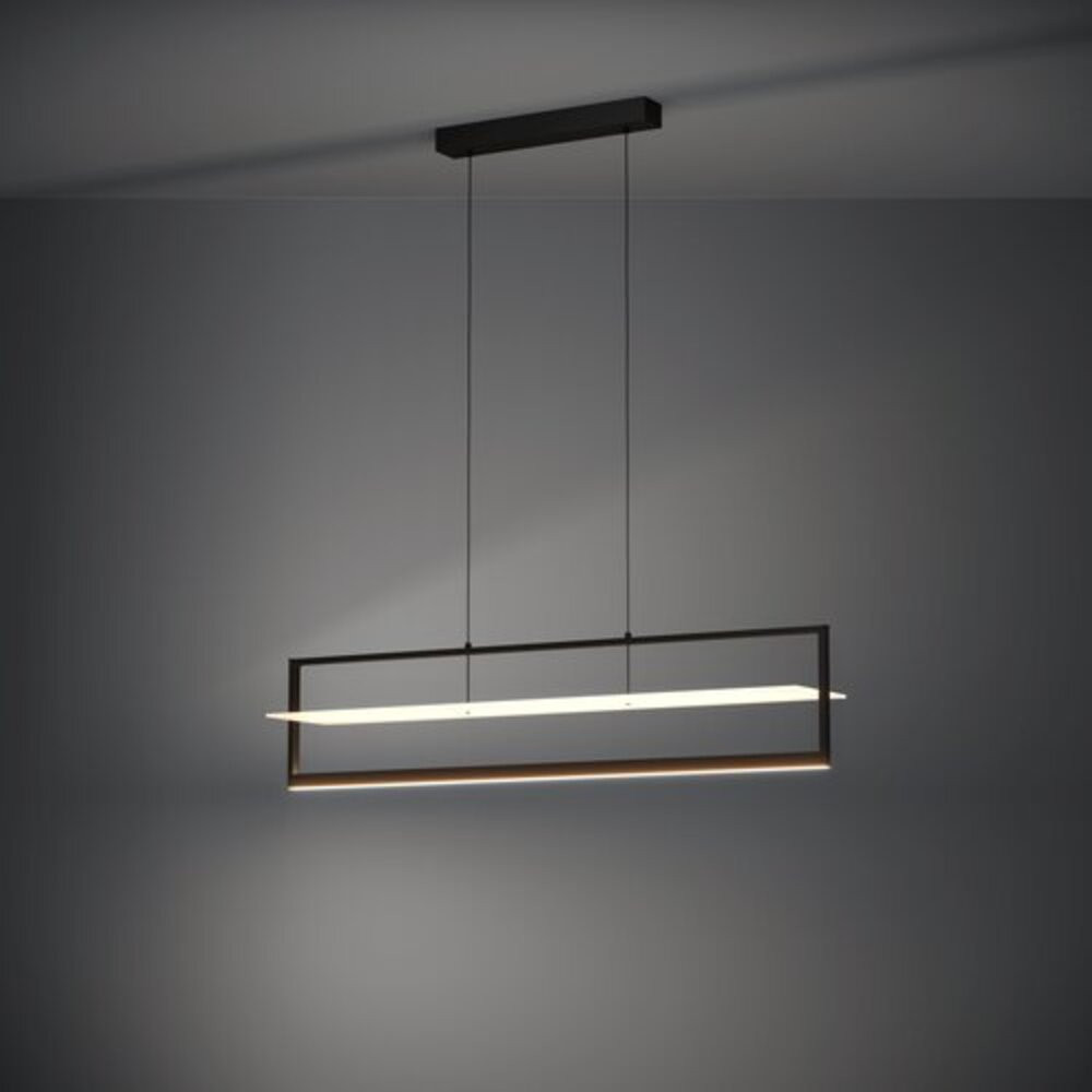 A FARNETA LED függeszték modern és stílusos megoldást kínál a beltéri világításhoz. Fekete, négyzetes fém kerete elegánsan harmonizál a belső teret díszítő fehér szatén akril világítóelemmel. Az integrált LED fényforrások kellemes meleg fehér fényt bocsátanak ki, és a falra szerelt forgó dimmer segítségével könnyen állítható a fényerősség. A lineáris dizájnnak köszönhetően a lámpa tökéletesen illeszkedik a modern otthonokba, ideális választás a nappaliban vagy az étkezőasztal fölött.