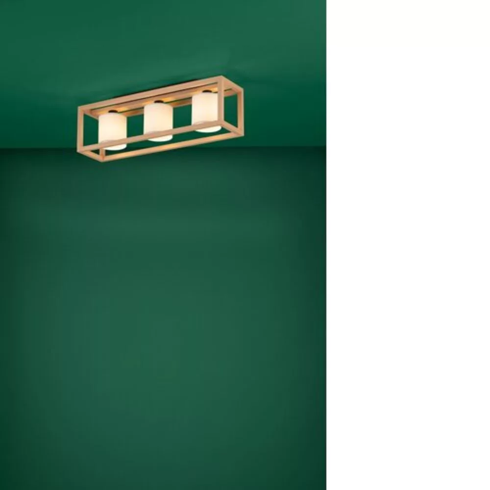 A GRANADOS mennyezeti lámpa természetes felületű, téglalap alakú bükkfa kerettel és három belső, fehér cilindrikus textilernyővel rendelkezik. A termék természetes megjelenése különböző belsőépítészeti stílusokat támogat, miközben kellemes világítást biztosít bármely térben, legyen szó hálószobáról, nappaliról vagy folyosóról. A fényforrás nem tartozék a termékhez. A lámpa E27 foglalatokkal rendelkezik, és E27-es izzókat igényel.