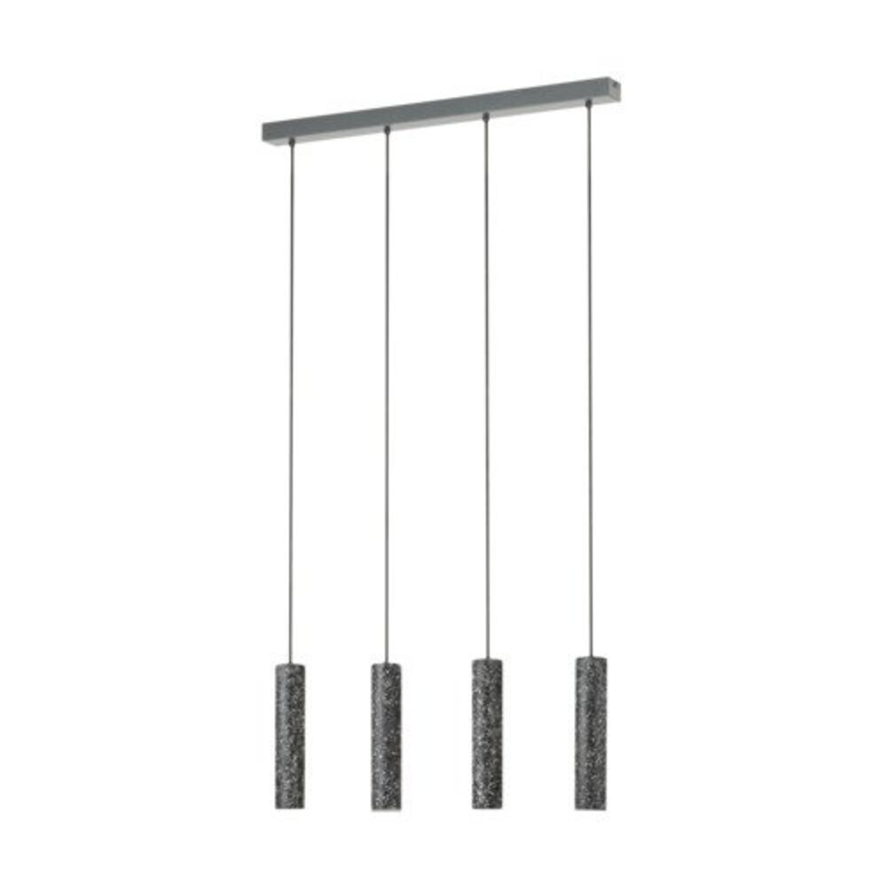 A MENTALONA LED függeszték egy stílusos világítási megoldás, amely négy henger alakú elemből áll, antracit színű terrazzo felülettel és antracit színű fém tartóval. A függeszték belsejében található GU10 foglalat elfedi a fébulbokat, és kellemes, meleg fehér fényt bocsát ki az alatta lévő területre. Minimalista dizájnja tökéletesen illeszkedik a modern belsőépítészeti stílusokhoz, kellemes fényt biztosítva bármely belső térben, legyen az a nappali vagy egy hosszabb étkezőasztal felett. A termék tartalmazza a GU10 fényforrásokat.
