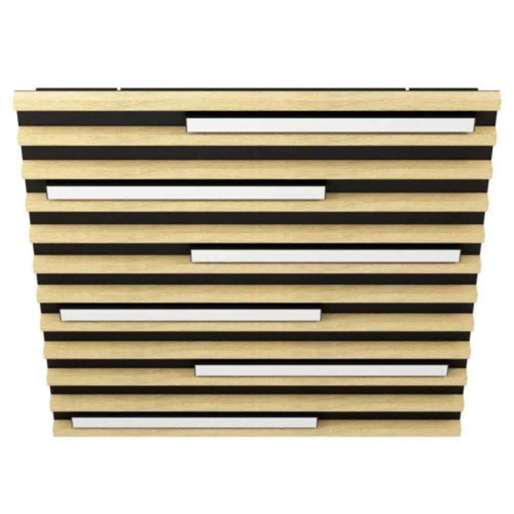 A MARREIRA LED mennyezeti lámpa egy modern, négyzetes fekete fém testtel rendelkezik, amelyhez tölgyfa borítású elemek kapcsolódnak, és hat LED profil eltolt elrendezésben található. Az integrált LED-ek, amelyek fehér műanyag borítás alatt rejtőznek, kellemes meleg fehér fényt bocsátanak ki, és falra szerelt forgó dimmer segítségével állíthatók. Ez a lámpa tökéletesen illeszkedik a minimalista és természetes stílusú belső terekhez, barátságos világítást teremtve bármilyen helyiségben, legyen az konyha, nappali, hálószoba, folyosó vagy étkező. A fényforrás tartozék a termékhez, így azonnal használatra kész.