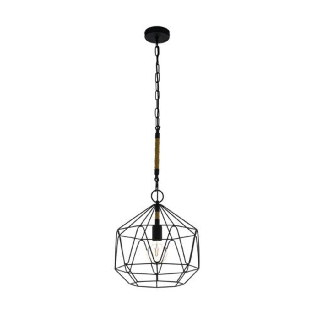A COTTINGHAM függeszték lámpa fekete gyémánt alakú drótháló lámpaernyőből készül, melyben látható izzó foglalat található. A termék kenderkötéllel van felfüggesztve, ami kiegészíti a rusztikus megjelenést. Amikor a függeszték lámpa bekapcsolva van, a drótkalitkán keresztül lenyűgöző játékot hoz létre a fény és árnyék. A függeszték lámpa ideális befejező érintése a vintage és ipari stílusú belső tereknek. A termék dekoratív világítást biztosít bármilyen helyiség számára, legyen az a nappali vagy az étkezőasztal felett. A termék 1 E27-es izzót igényel, amely nem tartozik hozzá.