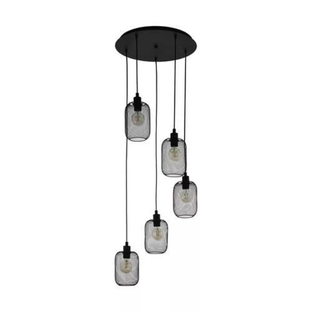 A WRINGTON függő lámpa öt henger alakú fém lámpaernyőből áll, amelyek fekete bővített fém hálóból készültek. A lámpaernyők rácsozatos mintája izgalmas fény- és árnyékjátékot hoz létre, amint a fény bekapcsolódik. A lámpa tökéletesen illeszkedik a vintage trendekhez és a modern belső terekhez. A lámpák spirális elrendezése szemet gyönyörködtető funkciót hoz létre, amely tökéletes a nappaliba vagy az étkezőasztal fölé. A képen látható izzók nem tartoznak a termékhez. A termék E27 izzófoglalatokkal rendelkezik és E27 izzókra van szükség.