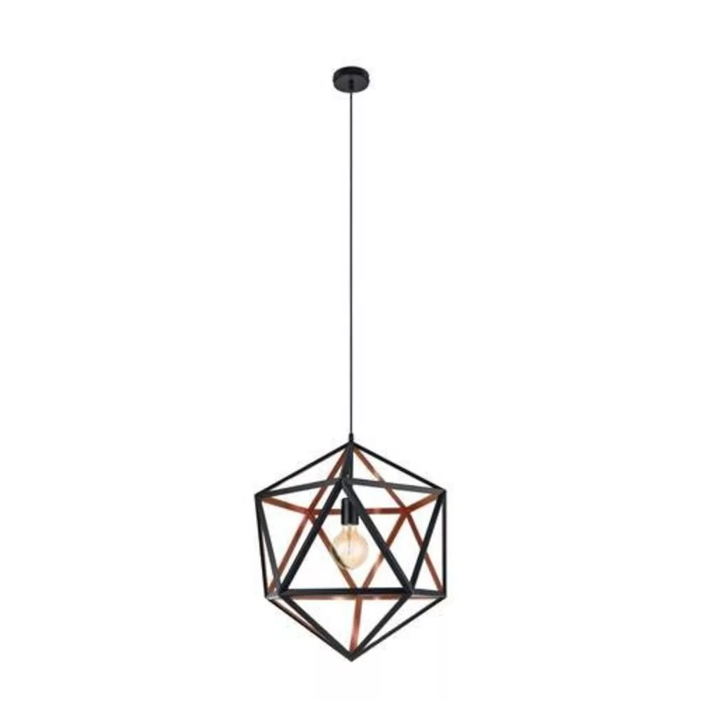 Az EMBLETON 1 függőlámpa fekete, gyémánt alakú fém lámpabúrával rendelkezik, belül arany bevonattal és látható izzós foglalattal. A lámpabúra fém szerkezete érdekes fény- és árnyékjátékot hoz létre, amikor a fény bekapcsol. A lámpa zökkenőmentesen illeszkedik az ipari vagy vintage stílusú belső terekbe. Különleges megvilágítást nyújt otthonában, akár a nappaliban, akár a vacsoraterem asztala feletti helyen. A képen látható izzószálas izzó nem tartozék. A termék E27-es izzót tartalmaz és 1db E27 izzót igényel.