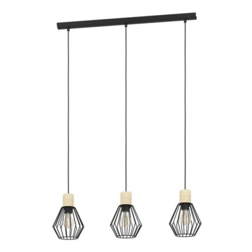 LED lámpa függeszték , mennyezeti , 3 x E27 , acél , fa , fekete , EGLO , PALMORLA , 43378