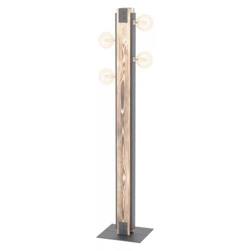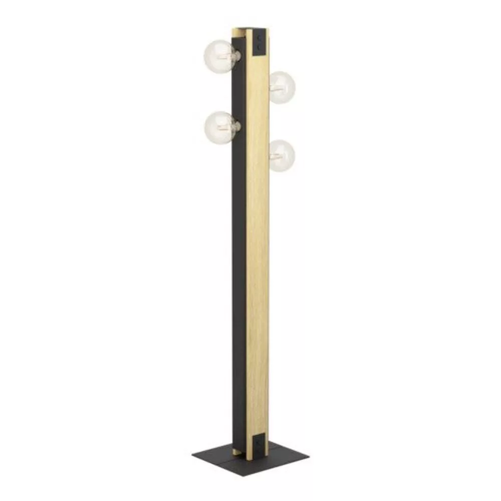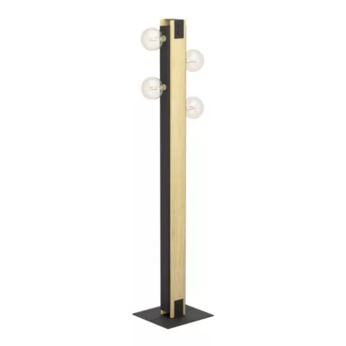 A LAYHAM padlólámpa fekete fém anyagból készült, égett fa oldal díszítéssel, és négy lámpatartóval rendelkezik. A terméket könnyen ki- és bekapcsolhatjuk az alján található kapcsoló segítségével. A padlófény tökéletesen illeszkedik olyan trendekhez, mint a vintage és az ipari, így különleges, szembetűnő elemet biztosít bármely térben, legyen az hálószoba, nappali vagy étkező. A képen látható izzósorok nem tartoznak a termékhez. A termék E27-es lámpatartókkal rendelkezik, és E27-es izzókra van szükség.