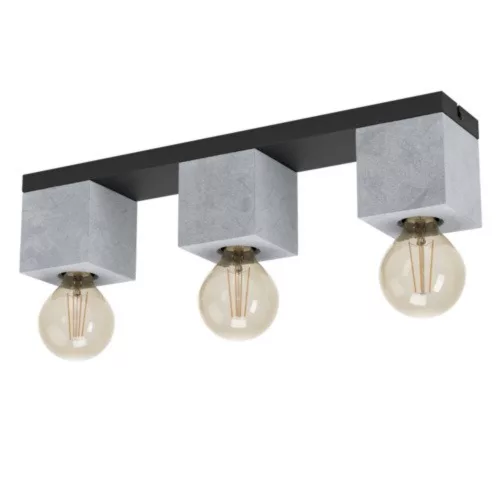 A PRESTWICK 3 mennyezeti lámpa három beton lámpaernyővel rendelkezik, szürke felülettel és fekete fémből készült mennyezeti rögzítőelemmel. A lámpa minimalista megjelenése az expozícióra helyezett izzók által érvényesül, így a modern belső terek tökéletes kiegészítője lehet. Ideális megoldás a nappaliba, étkezőbe, folyosóra vagy hálószobába. A képen látható szálfüst izzók nem tartozékai a terméknek. A lámpa E27 foglalatot használ, és három darab E27 fényforrást fogad, maximum 40W teljesítménnyel. Minimalista világítást kínál, és kiegészíti a kortárs enteriőröket.