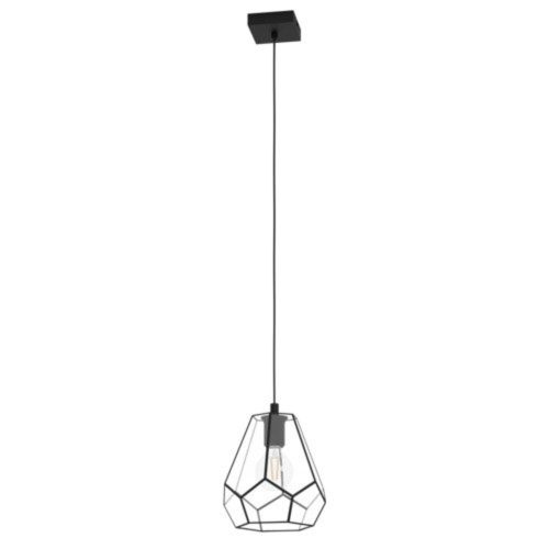 A MARDYKE függeszték lámpa egyedi, gyémánt alakú búrával rendelkezik, amely tiszta terrárium üvegből és fekete fémkeretből készült. A fém keret lenyűgöző fény- és árnyékjátékot teremt, amikor a lámpa fel van kapcsolva. Ez a stílusos függeszték lámpa játékosan illeszkedik az ipari stílushoz, tökéletes hangulatot biztosítva a nappaliban vagy az étkezőben. Az ábrán látható szálcsiszolt izzó nem tartozék a termékhez. A termék E27 foglalattal rendelkezik, amely E27-es fényforrást igényel.