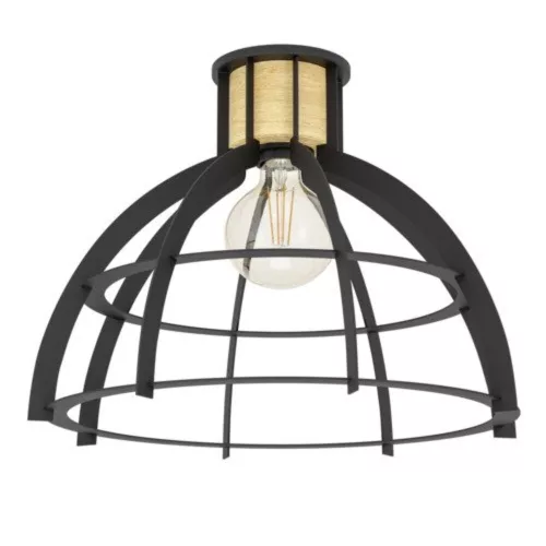 Az EGLO Trend & Style családba tartozó mennyezeti lámpa a vintage stílus kedvelőinek ideális választás. A lámpa fekete acél és barna fa burkolata eleganciát sugároz, míg a klasszikus E27 foglalat lehetővé teszi a széleskörű fényforrás választék használatát. A maximális teljesítmény 1x40W, és kérjük, vegye figyelembe, hogy a fényforrás nem tartozék a termékhez.