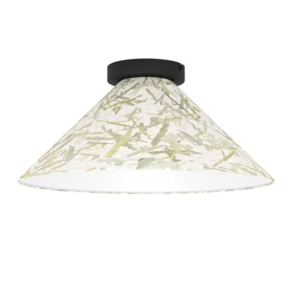 Az EGLO OXPARK mennyezeti lámpája tökéletes választás otthona belső teréhez, vintage témájával és elegáns kivitelezésével. A lámpa burkolata acélból készült, fekete színű, míg a búra textil anyagú, babuszlevelekkel díszített, fehér és zöld árnyalatokban. A lámpa E27 foglalattal rendelkezik, maximum 25W teljesítménnyel. Az izzó nem tartozék a termékhez, így azt külön kell megvásárolni.