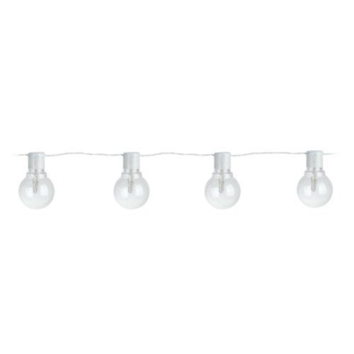 A PARTAJ kültéri fényfüzér egy elegáns és praktikus megoldás, amely lehetővé teszi, hogy különleges hangulatot varázsoljon teraszára vagy kertjébe. A termék fehér műanyag burkolattal rendelkezik, amely tartós és időjárásálló, míg az átlátszó műanyag búra kellemes fényt biztosít.