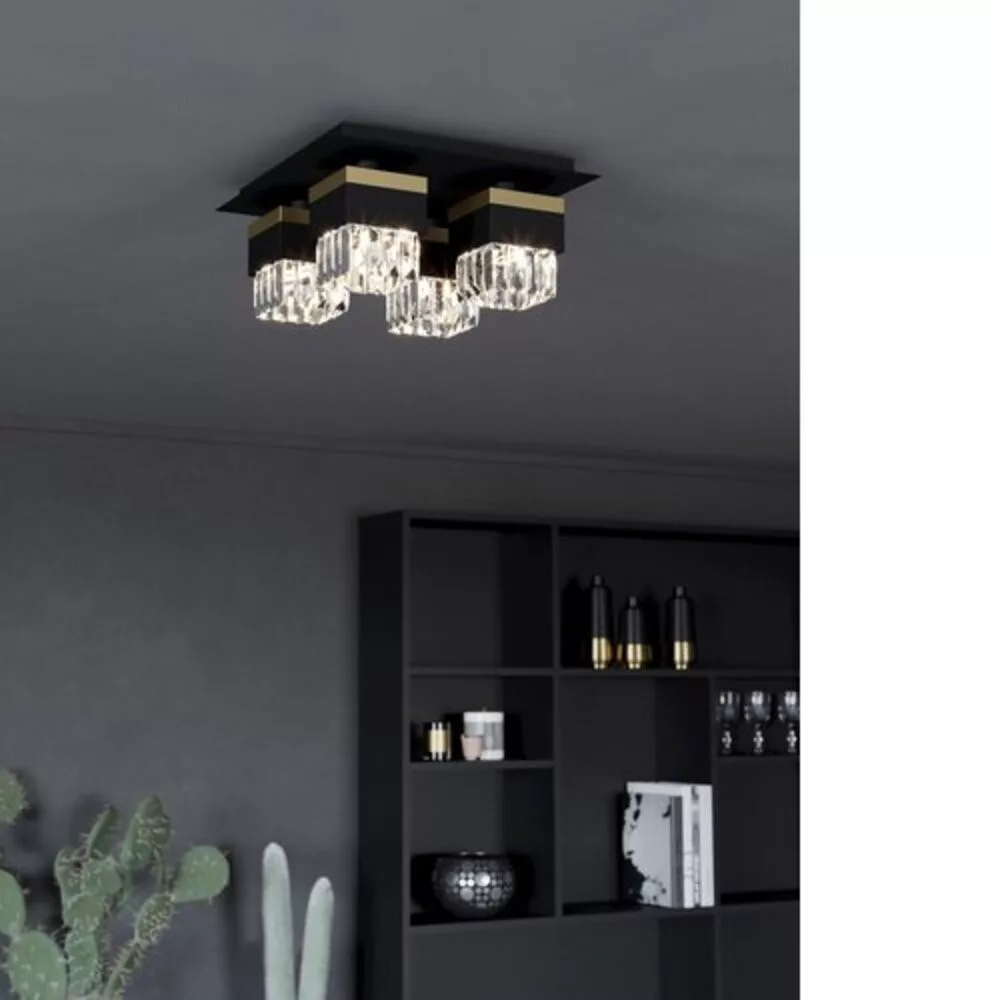 Az EGLO BARRANCA mennyezeti lámpa egy elegáns és stílusos beltéri világítóeszköz, amely a modern lakások tökéletes kiegészítője lehet. A burkolat acélból készült, fekete és arany színkombinációval, míg az átlátszó kristály búra elegáns megjelenést biztosít. A lámpa E14 foglalattal rendelkezik, maximálisan 4 x 40W vagy 12W teljesítménnyel üzemelhet, így kiemelkedő világítást nyújt. Fontos megjegyezni, hogy a fényforrás nem tartozék a termékhez. Dimmelhető funkcióval bír, de kapcsoló nélkül működik, IP20 védettséggel rendelkezik. A termék méretei: 380 mm x 380 mm x 180 mm, bruttó súlya 5,362 kg. Két év garancia biztosítja a megbízhatóságát.
