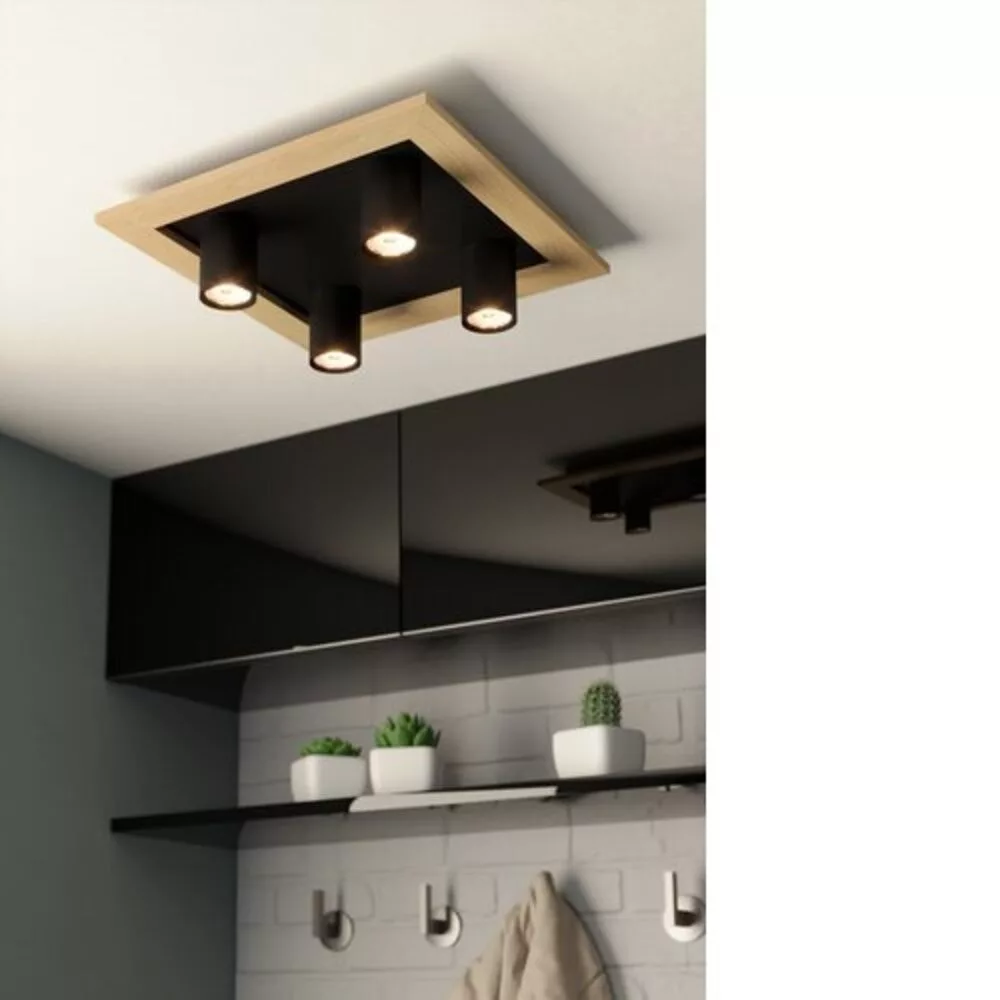 A VALCASOTTO mennyezeti lámpa modern kialakításával és stílusos acél, fa burkolatával tökéletes választás belső terekbe. A lampak fekete és barna színben érhető el, így könnyen illeszthető a különböző enteriőrökhöz. A termék GU10 LED fényforrással működik, amely tartozék a csomagban, és maximum 4x4,5W teljesítményű. A lámpa dimmelhető, ami lehetővé teszi a fényerőszabályozást, így mindig a kívánt hangulatot teremtheti meg. Az IP20 védelemmel rendelkező lámpa ideális választás otthoni használatra. A termék méretei: 370 mm széles, 370 mm hosszú és 100 mm magas, bruttó súlya pedig 2,796 kg. A készülékhez 2 év garancia jár.