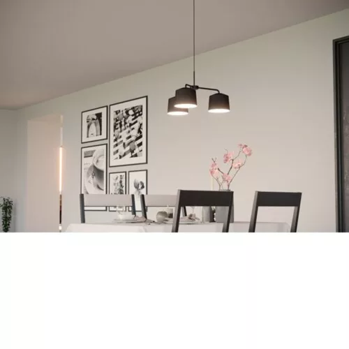 Az EGLO CAGUANE beltéri lámpa elegáns függeszték, amely acél burkolattal és fekete, fehér színváltozattal elérhető. A lámpa három E27 fogalattal rendelkezik, maximális teljesítménye 3x40W, így ideális világítást biztosít bármely helyiségben. A termékhez nem tartozik fényforrás, így a megfelelő izzók külön megvásárolhatók. A lámpa dimmelhető, de kapcsoló nélkül működik. Modern kialakítása és IP20 védelmi osztálya révén tökéletes választás lakásbelsők díszítésére. Az egyedi csomagolás méretei: 500 mm magasság, 450 mm hosszúság és 200 mm mélység. Két év garanciával rendelkezik, így biztosítva a felhasználók elégedettségét.