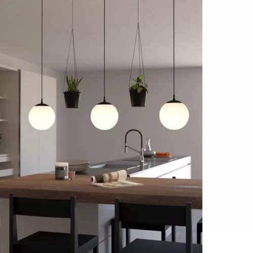 Fedezze fel a RONDO 3 beltéri lámpát, mely elegáns fekete acél burkolattal és fehér opál üveg búrával rendelkezik. A lámpa három E27-es foglalattal készült, amely maximum 3x40W teljesítményt biztosít. A termék nem tartalmaz fényforrást, így a választás szabadságát adja Önnek, hogy saját igényeinek megfelelő izzót válasszon. Dimmelhető funkciójának köszönhetően lehetőséget ad a fényerő szabályozására, így bármilyen hangulat megteremthető. Az IP20 védelemmel ellátott lámpa ideális választás bármely modern otthon belső terébe. A RONDO 3 1210 mm hosszú, 200 mm széles és 1100 mm magas, tökéletesen alkalmazkodik a tér adottságaihoz. A termék 5 éves garanciával rendelkezik, biztosítva ezzel hosszú távú megbízhatóságát.