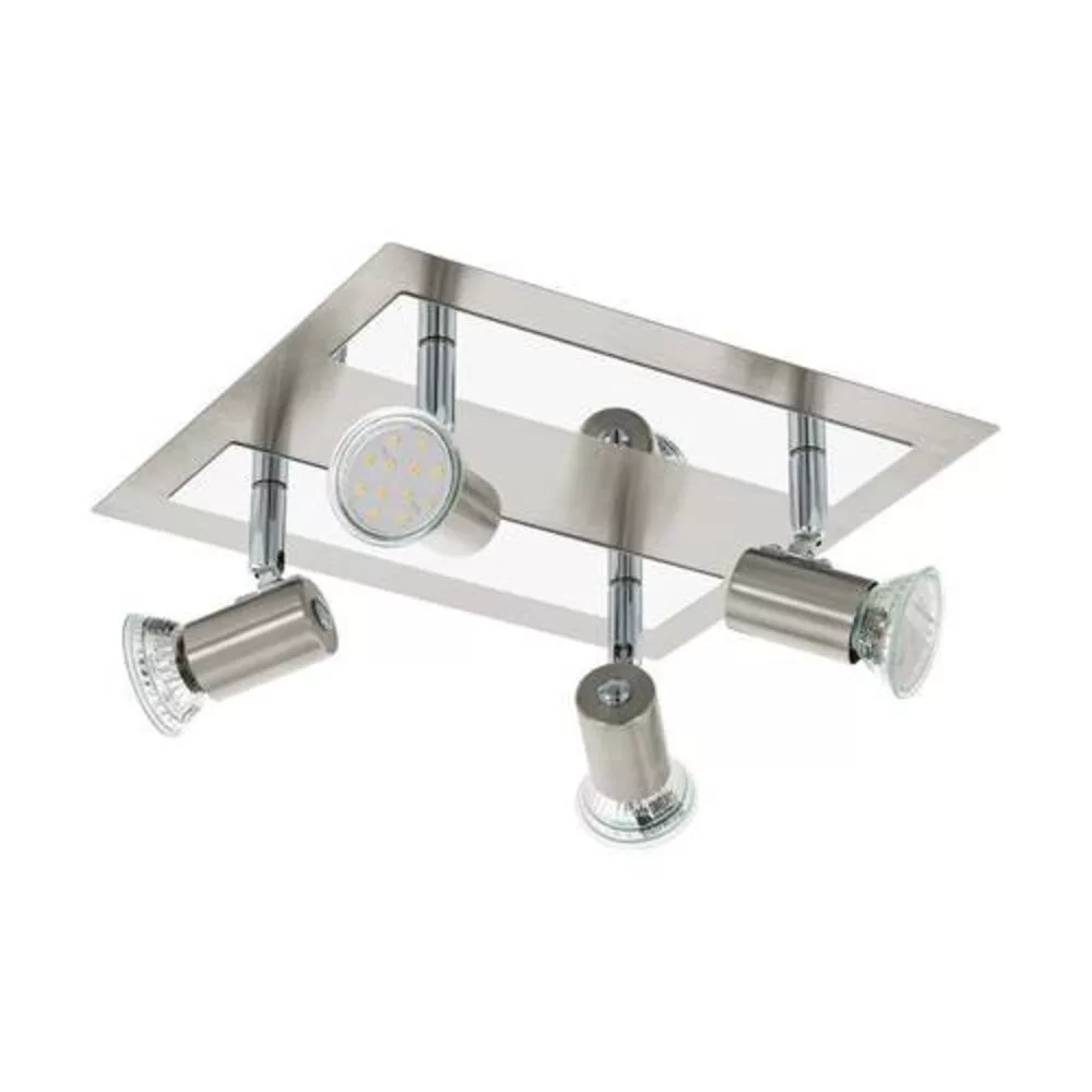 Ez a négy flare spot a ROTELLO sorozatból készült szatén nikkelből és krómozott acélból, és négy GU10-LED-lámpával van felszerelve meleg fehér fényhez.