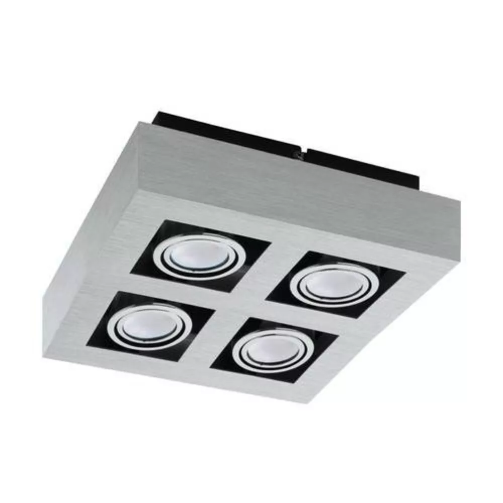 Ez a felszíni lámpatest a LOKE 1 sorozatból készült, kefézett alumíniumból és krómozott, fekete acélból. Négy GU10-LED-lámpával van felszerelve, amely meleg fehér fényt biztosít.