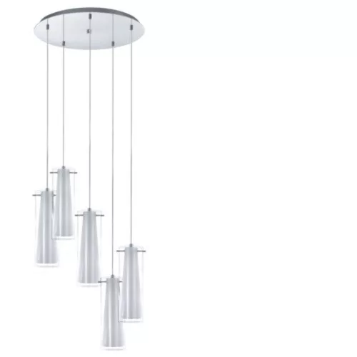 A PINTO sorozat pendánt lámpája króm bevonatú acélból, átlátszó és fehér opál üvegből készült. A lámpatest öt E27-es foglalattal rendelkezik, melyekhez illő fényforrások nem tartozékai a terméknek. A PINTO sorozat lámpái karcsú kialakításukkal és kellemes atmoszférát teremtenek. Max. teljesítménye 5x40W, és dimmelhető kivitelben érhető el. A lámpa IP20-as védettséggel rendelkezik, így beltéri használatra ideális. A termék méretei: hossza 1500 mm, átmérője 500 mm. A gyártó márkája EGLO.