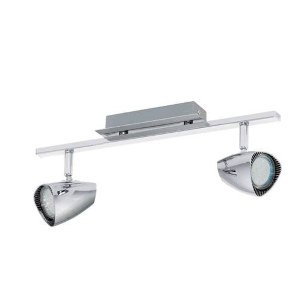 Ez a CORBERA sorozatból származó kétlángú spotlámpa krómozott acélból és műanyagból készült, és két GU10-LED-izzóval van felszerelve a meleg fehér fény érdekében.