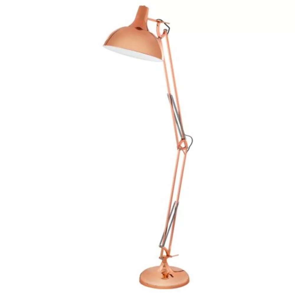 A BORGILLIO állólámpa réz színű fémből készült, és állítható fejjel rendelkezik, amelynek belső része fehér. A test praktikus csuklói lehetővé teszik a magasság azonnali beállítását, hogy tökéletesen megvilágítsa a szoba egy bizonyos területét. A lámpát könnyedén lehet be- és kikapcsolni a padlón lévő kapcsoló segítségével, és zökkenőmentesen beilleszkedik a modern enteriőrökbe. A termékhez nem tartozik izzó. Az E27-es foglalattal rendelkező termék E27-es izzót igényel.