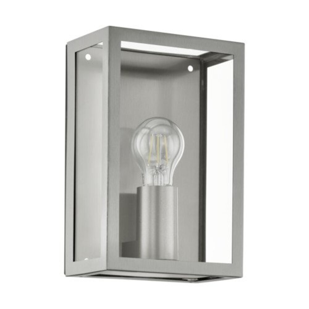 Az ALAMONTE 1 kültéri fali lámpa elegáns rozsdamentes acél kerettel és átlátszó üveg panellel rendelkezik, amelyben a fényforrás helyezkedik el. Az IP44 védettségnek köszönhetően az esővíz fröccsenése ellen védett, így ideális választás modern kültéri területekhez. A termék E27 foglalattal rendelkezik, és 1 darab E27 fényforrást igényel, amely nem tartozék a termékhez.