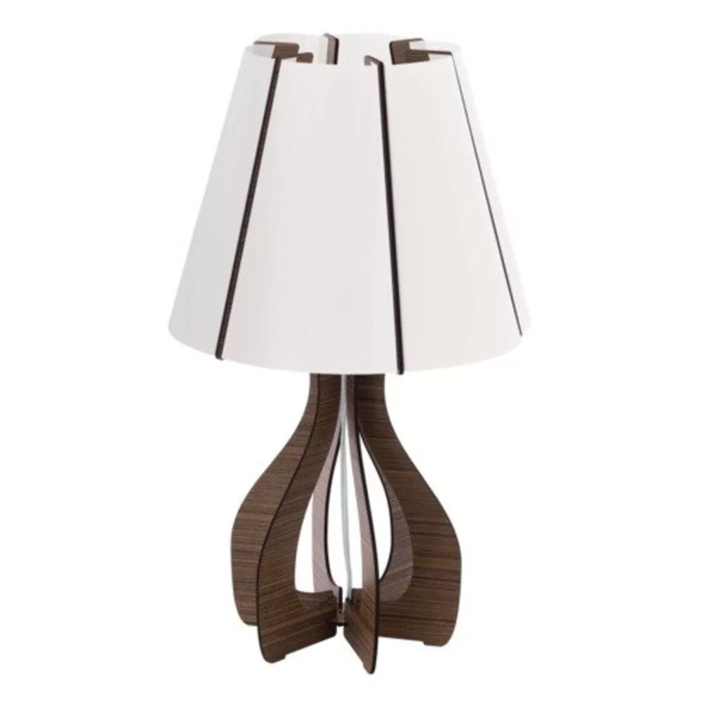 A COSSANO sorozatba tartozó asztali lámpa barna fából és fehér műanyagból készült, zsinórkapcsolóval működtethető. Védett szigeteléssel rendelkezik, és E27 foglalattal ellátott izzót igényel a világításhoz. A lámpa nem tartalmaz fényforrást, így ennek beszerzéséről önnek kell gondoskodnia. A COSSANO sorozat különleges fából készült lamellái divatos megjelenést biztosítanak otthonának, és többféle formában, méretben és színben érhetők el.