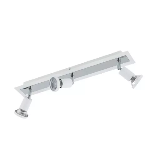 A SARRIA LED mennyezeti lámpa egy téglalap alakú fehér fémtestet és három állítható fehér fém spotlámpát tartalmaz. A lámpán króm színű fémdíszítések is találhatóak, amelyek tökéletesen kiegészítik a minimalista design-t. A forgatható reflektorok lehetővé teszik a fény egyedi területek kiemelésére történő beállítását, legyen az a konyhában, a nappaliban, a hálószobában vagy a folyosón. A termék GU10 LED izzókkal kerül szállításra, amelyek kellemes, meleg fehér fényt bocsátanak ki.