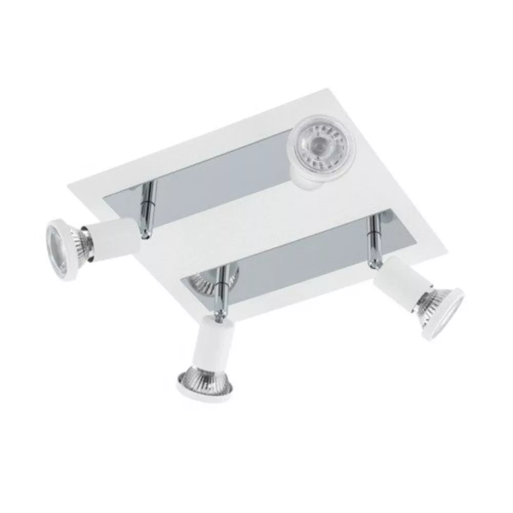 A SARRIA LED mennyezeti lámpa fehér fém testből és négy állítható fehér fém spotlámpából áll. A lámpában krómszínű fém részletek is találhatóak, amelyek tökéletesen kiegészítik a minimalista dizájnt. Az elforgatható spotlámpák lehetővé teszik a fény beállítását a szoba egyes területeinek kiemelésére, legyen szó a konyháról, a nappaliról, a hálószobáról vagy az előszobáról. A termékhez GU10 LED fényforrások tartoznak, amelyek kellemes, meleg fehér fényt bocsátanak ki.