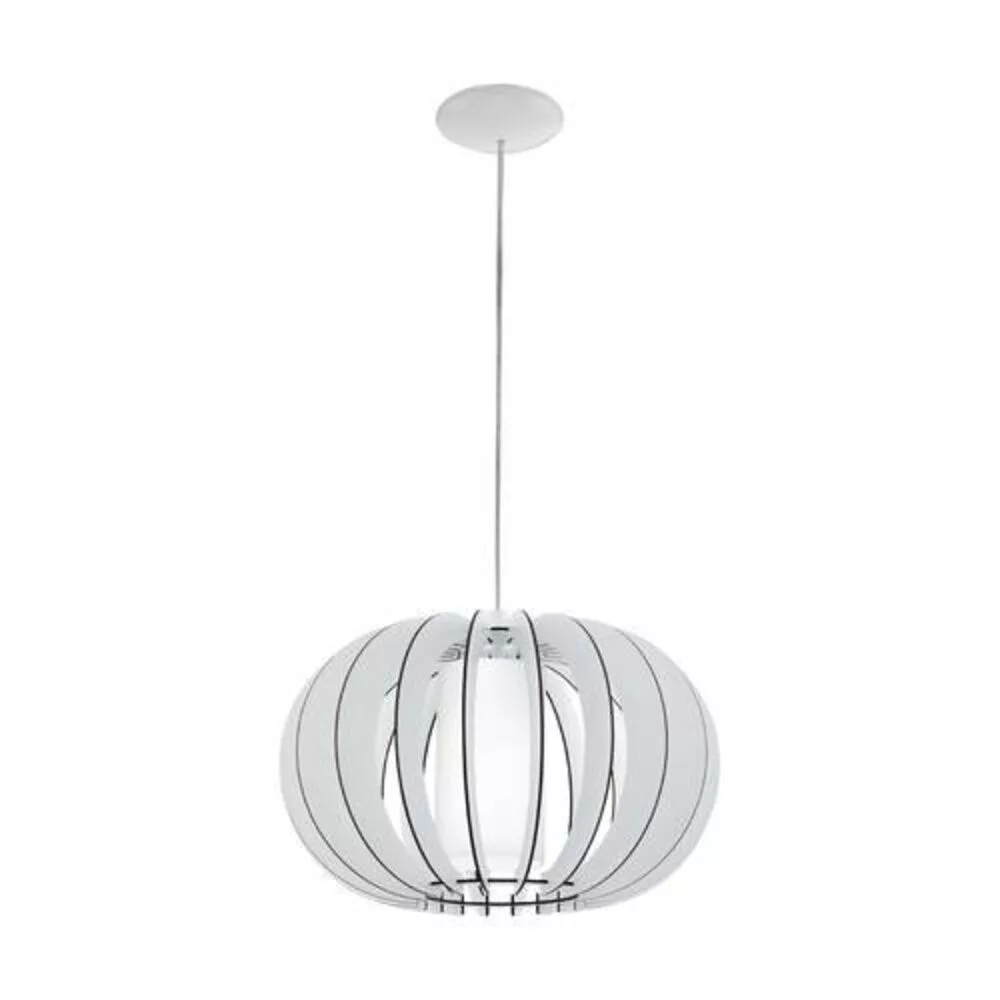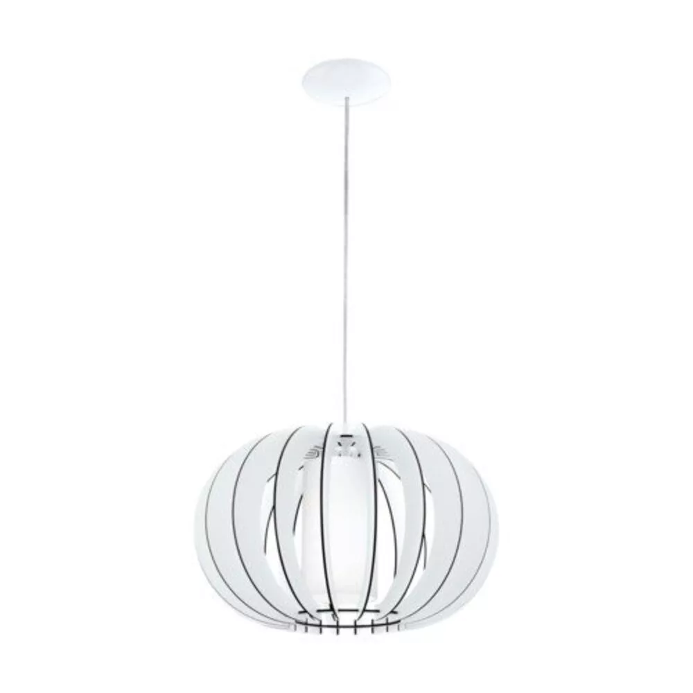 A STELLATO 2 függőlámpa kerek lámpaernyője fehér faelemekből készült. A belső fehér üveg henger kiegészíti a lámpa modern megjelenését és vonzó fényt biztosít. A függőlámpa minden belső design stílussal harmonizál, otthonos világítást biztosítva a nappaliban vagy az étkezőasztal felett. A villanykörte nincs tartozékban. A termék E27 foglalattal rendelkezik és E27 izzót igényel.