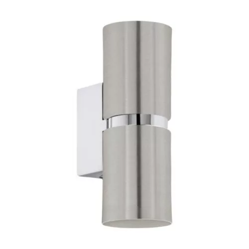 A PASSA LED fali lámpának hengeres test van matt nikkelből, króm színű fém fali rögzítéssel. A termékhez GU10 LED fényforrások tartoznak, amelyek kellemes meleg fehér fényt bocsátanak ki és közvetett világítást hoznak létre a falon a fel-le tervezés miatt. A modern és minimalista design miatt a fali lámpa beilleszthető különböző lakóterekbe, legyen az a nappali, hálószoba, étkező vagy előszoba.