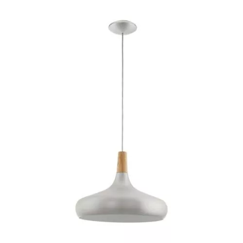 A SABINAR függeszték lámpa hajlított fémlámpaernyővel rendelkezik, amely kefézett ezüst színben lóg egy fehér kábelről. A lámpaernyőn barna faelem található, amely kiegészíti a függeszték lámpa varázsát. Skandináv designjával és 40 cm átmérőjével a függeszték lámpa stílusos megvilágítást biztosít a nappaliban vagy az étkezőben. A villanykörte nincs tartozékban. A terméknek E27-es foglalata van, és E27-es villanykörtét igényel.