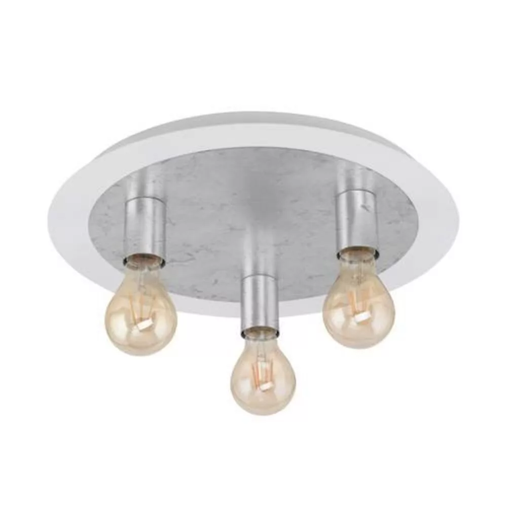 Ez a PASSANO sorozatú fal- vagy mennyezeti lámpatest fehér és ezüstszínű acélból készült. Három E27-es fényforrást igényel a ragyogáshoz.