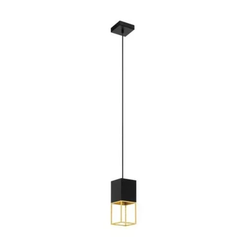 A MONTEBALDO függesztett lámpa egy négyzet alakú fekete fém ernyővel és kocka alakú fejjel rendelkezik. Az aranyszínű fémkeret, amely a fejhez csatlakozik, kiegészíti a függesztett lámpa stílusos megjelenését. A lámpatartó a designon belül található, így az a csomagban található GU10 izzó rejtve van és kellemes, meleg fehér fényt vet az alatta lévő területre. A minimalista lámpa tökéletesen integrálható a modern belső terekbe, ideális világítási megoldást nyújtva a nappaliban vagy az étkezőben.