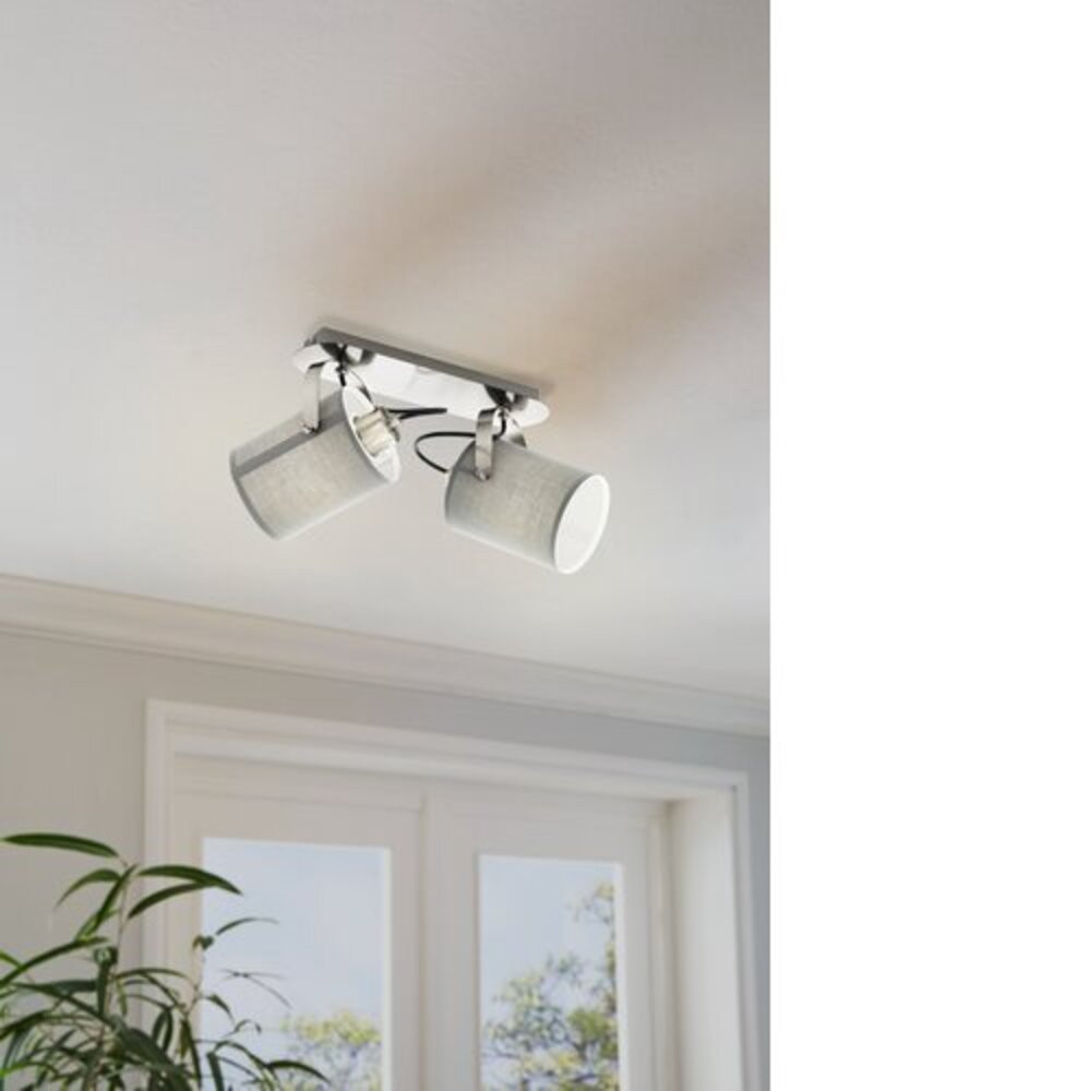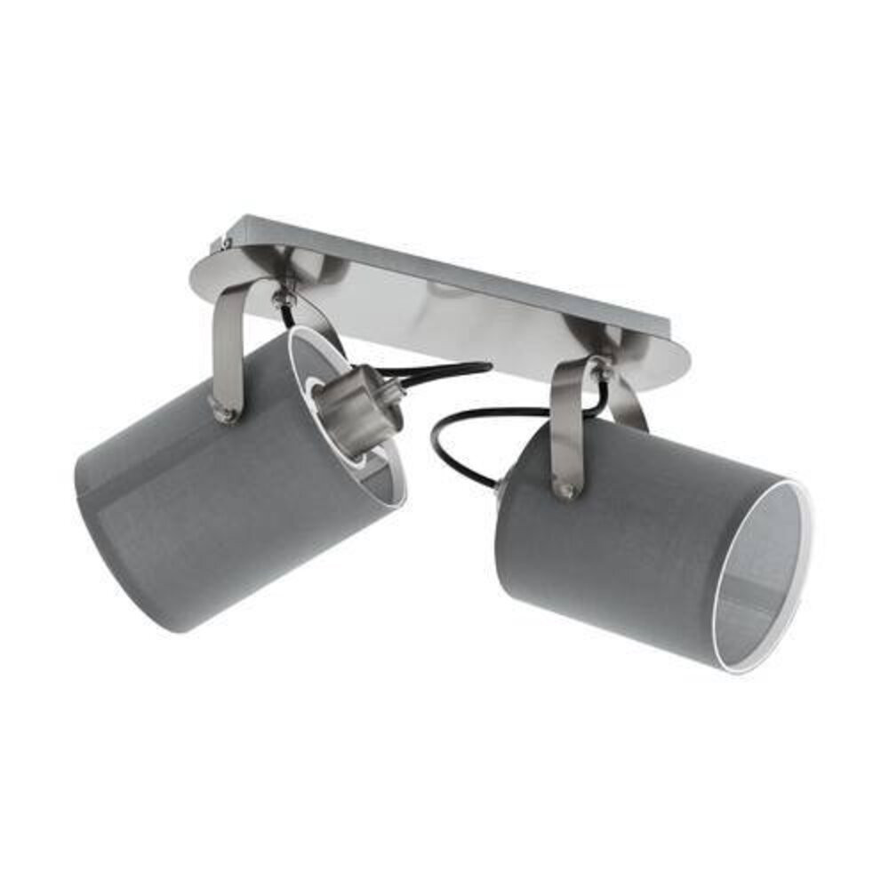A VILLABATE fali vagy mennyezeti spotlámpa fémből készült matt nikkel bevonattal, és két állítható szürke szövet spotlámpával rendelkezik. A design modern belsőépítészeti stílusokat egészít ki. Forgatható fejével a minimalista mennyezeti lámpa jól működik bármilyen térben, legyen az konyha, nappali, hálószoba, előszoba vagy étkező. A lámpa nem tartalmaz izzót. A termékben E27 foglalat található, és E27 izzóra van szükség.