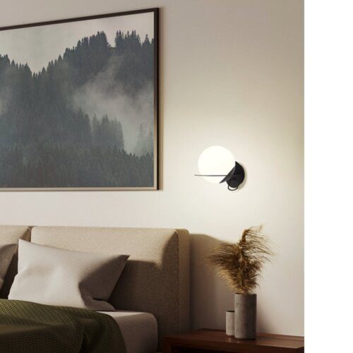Ez a SABALETE sorozatú fali lámpa fekete strukturált porbevonatú acélból és fehér opálos üvegből készült. Egy E27-es izzóra van szüksége a fényléshez.