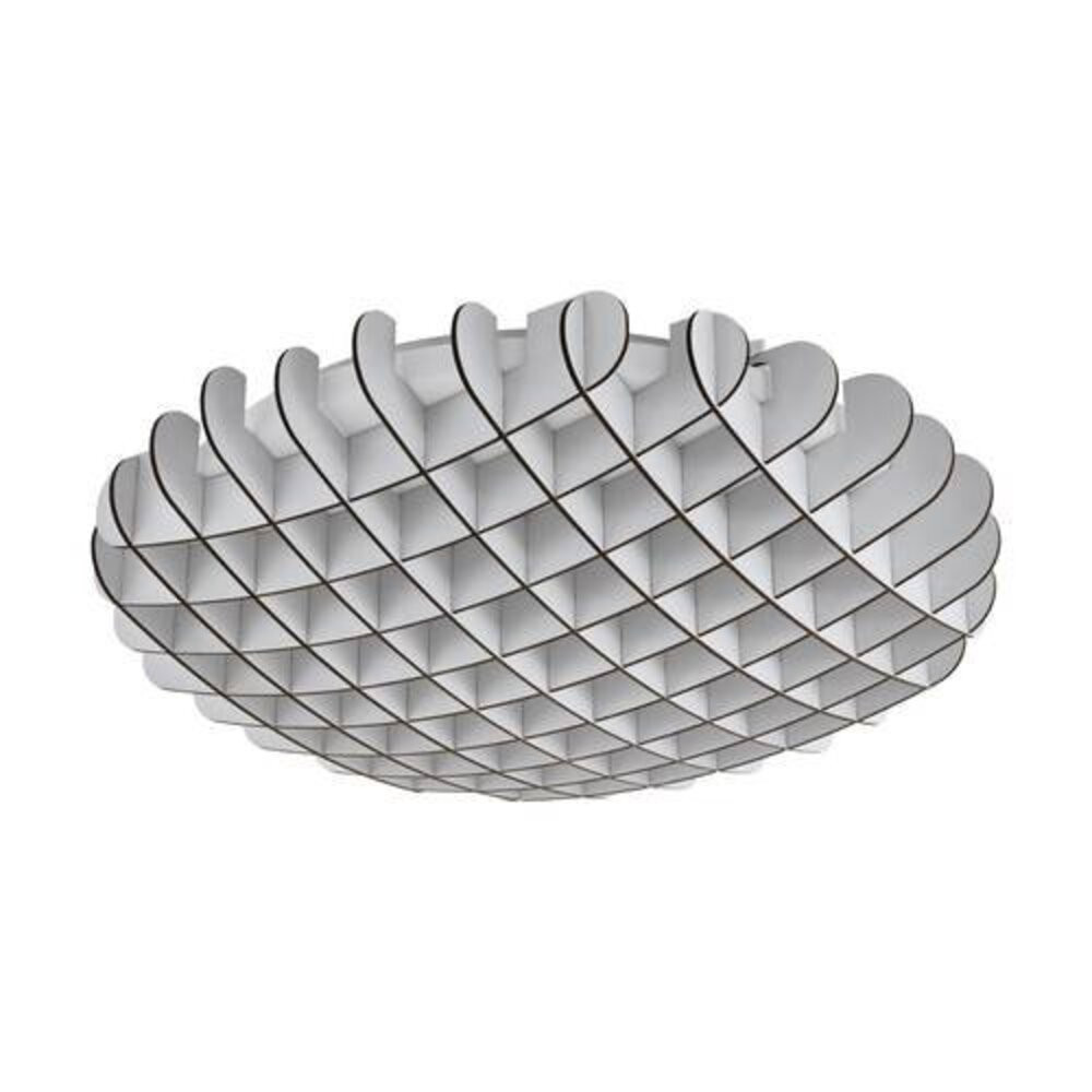 Ez a falra vagy mennyezetre szerelhető lámpa a VALDECABRAS sorozatból fehér porbevonatú acélból és műanyagból készült, fehér fa lécekkel. Az integrált LED-világítás meleg fehér fényt ad.