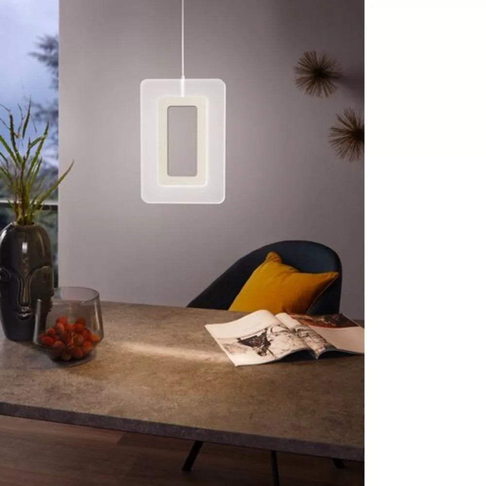 Az ENALURI LED függesztett lámpa lapos akriltesttel rendelkezik, amely egy matt nikkel fémelemet vesz körül. Az integrált LED-ek kellemes, meleg fehér fényt bocsátanak ki. Matt nikkel mennyezeti rögzítésével a minimalista függesztett lámpa tökéletesen illeszkedik a modern belső terekbe, és klasszikus kialakítása miatt bármely térben tökéletesen működik, legyen az a nappali vagy az étkezőasztal felett az étkezőben.
