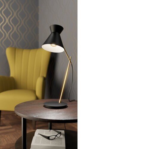 Az AMEZAGA asztali lámpa karcsú fémkarja sárgaréz színben készült, míg az alapja fekete fém, és egy különösen vonzó formájú fémbura védi a fényforrást. A bura külső felülete fekete, ellentétben a belső fehér felülettel, ami kellemes kontrasztot alkot. A lámpát egyszerűen fel- és lekapcsolhatja a tetején található billenő kapcsolóval. Finom, minimalista dizájnjával ez a magas minőségű asztali lámpa tökéletesen illeszkedik a modern belső terekhez, kellemes világítást biztosítva a hálóban, a nappaliban vagy a folyosón. A termék E27-es fényforrással rendelkezik, de a fényforrás nem tartozék.