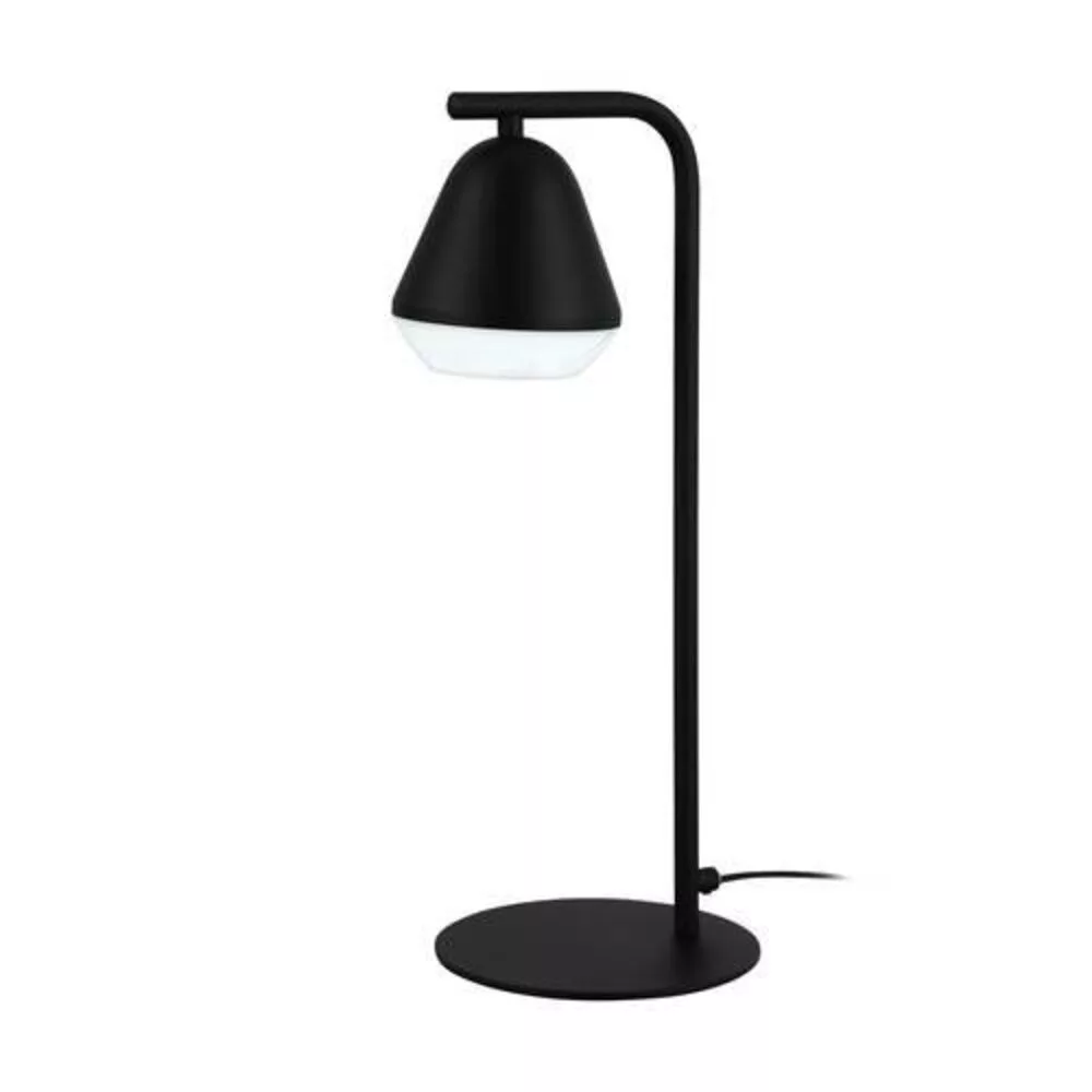 A PALBIETA LED asztali lámpa ívelt talppal és kúp alakú lámpabúrával rendelkezik, amely fekete fémbevonattal van befejezve. A mellékelt GU10 LED izzó a szatén műanyag borítás alatt meleg fehér fényt vetít. A termék egyszerű kialakítású, amely problémamentesen illeszthető a modern minimalista stílusú belső terekbe, és a lámpát az in-line kapcsoló segítségével könnyedén fel és le lehet kapcsolni. A lámpa barátságos világítást biztosít bármilyen otthon számára, legyen ez egy éjjeliszekrényen, a nappaliban, étkezőben vagy előszobában.