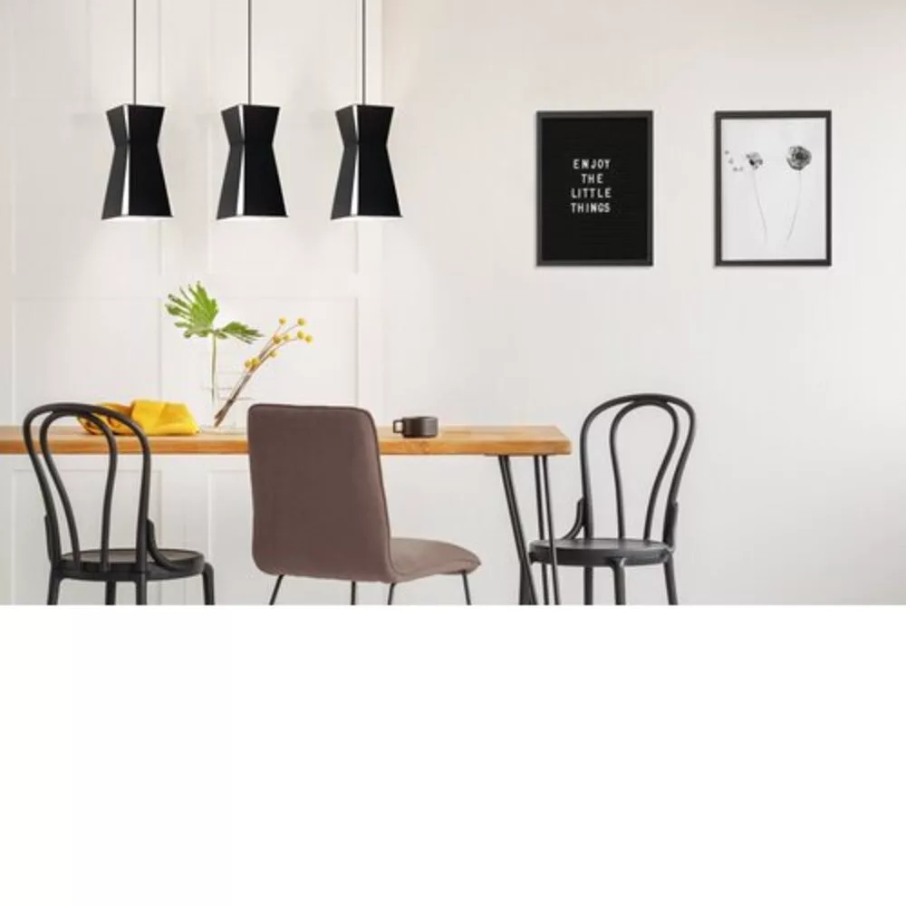 A VALECROSIA függőlámpának három lámpabúrája van, mindegyik négy fekete fémlappal, fehér belső felülettel rendelkezik. A termék kivágott mintával rendelkezik a fémlámpabúrákon, amely egyedülálló megjelenést kölcsönöz, és izgalmas fény-árnyék játékot teremt a falon. A függőlámpa kiegészíti a modern belső tereket, és bármilyen helyiségben jól működik, legyen az nappali vagy hosszú étkezőasztal felett az étkezőben. Az izzók nincsenek tartozékban. A termék E27 foglalattal rendelkezik és E27-es izzókat igényel.