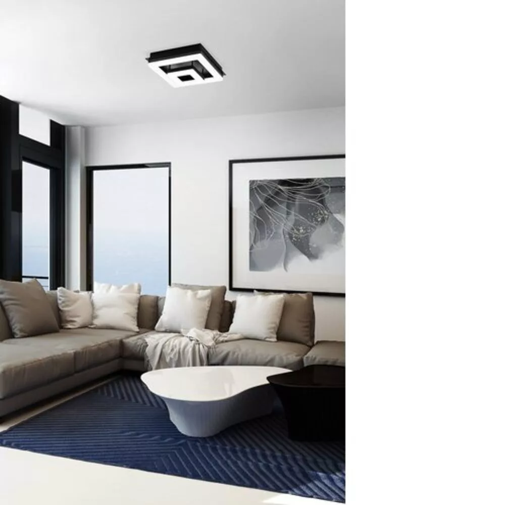 A FRADELO 1 LED mennyezeti lámpatest négyzet alakú, fekete fémtestet és két átlátszó műanyag fényelemet különböző méretekben, világos, szemcsés kristályokkal belül tartalmaz. Ez a kristálytervezés csillogó, magas színvonalú megjelenést teremt, ami a fekete kivitelhez képest drámai hatást kelt. Az integrált LED-ek kellemes, meleg fehér fényt bocsátanak ki. Klasszikus tervezésével a termék zökkenőmentesen illeszkedik a modern belső terekbe, és bármely lakótérben jól működik, legyen az konyha, nappali, hálószoba, előszoba vagy étkező.