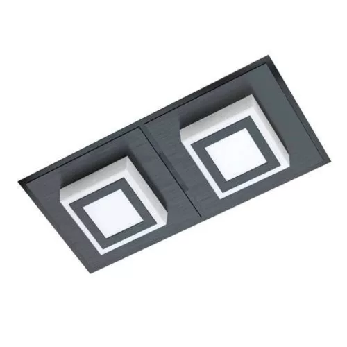 A MASIANO 1 LED mennyezeti lámpa matt fekete fém kivitelben készül, dekoratív, fekete színű, ecsetelt alumínium részletekkel. A két négyzet alakú, szatén műanyag fedél alatt elhelyezett beépített LED-ek kellemes, meleg fehér fényt bocsátanak ki. Karcsú kialakításának köszönhetően a mennyezeti lámpa könnyedén használható faliként is. A termék modern stílusban készül, amely vonzza a tekintetet bármely helyiségben, legyen szó konyháról, nappaliról, hálószobáról, előszobáról, étkezőről vagy irodáról.