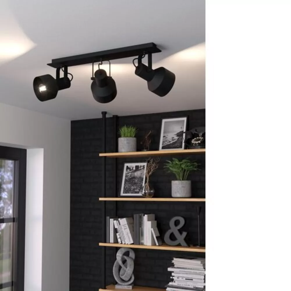 A CASIBARE mennyezeti lámpa fekete fém anyagból készült, három állítható fekete spotlámpával. Monokróm designjának köszönhetően a lámpa tökéletesen illeszkedik a modern enteriőrökbe. Az állítható spotlámpák lehetővé teszik a fény irányítását a helyiség különböző részeire, legyen szó a nappaliról, hálószobáról, előszobáról vagy étkezőről. A képen látható szálcsövű fényforrások nem tartozékai a terméknek. A lámpa E27 foglalattal rendelkezik, és 3 db E27-es fényforrást igényel.