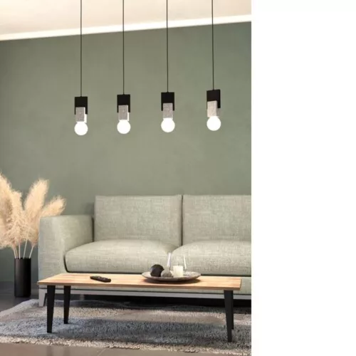 A LOBATIA függőlámpa négy szögletes lámpatartóval rendelkezik, melyek szürke és fehér márványbetonból készültek, fekete fa elemmel kombinálva. A lámpatartók fekete fém rögzítőről lógnek le. A minimalistához illeszkedő lámpa tökéletesen beleillik a modern enteriőrökbe, stílusos világítást biztosítva a nappaliban vagy egy hosszú étkezőasztal fölött. A képen látható fényforrások nem részei a terméknek. A termék E27 foglalattal rendelkezik, és E27-es fényforrások használatát igényli.